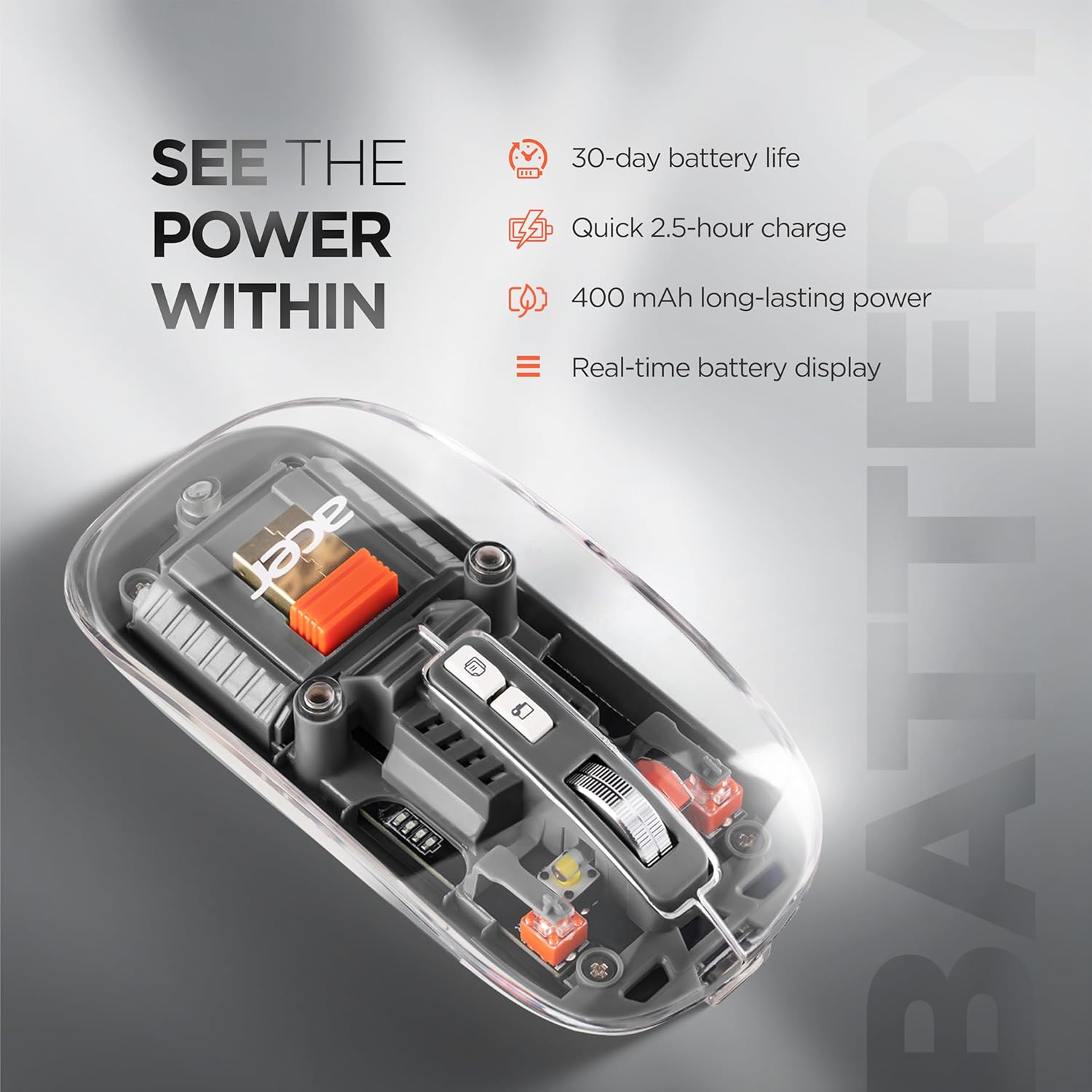 Acer Clearview Transparent Wireless Mouse with Triple-Mode Connectivity, Silent Click Tech